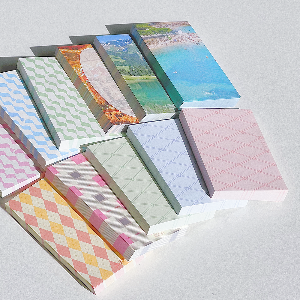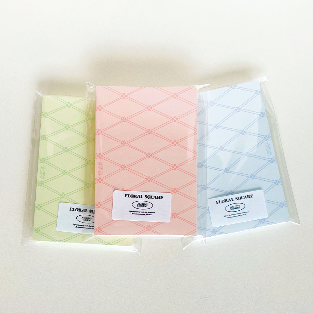 잔잔한 플라워패턴과 사선 스퀘어 패턴으로 구성된 메모지입니다.