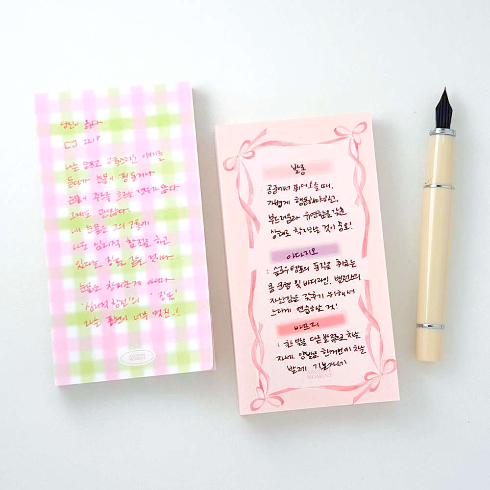 하늘 하늘 춤추는 발레리나는 닮은 리본을 표현해본 걸리쉬한 메모패드입니다🧡