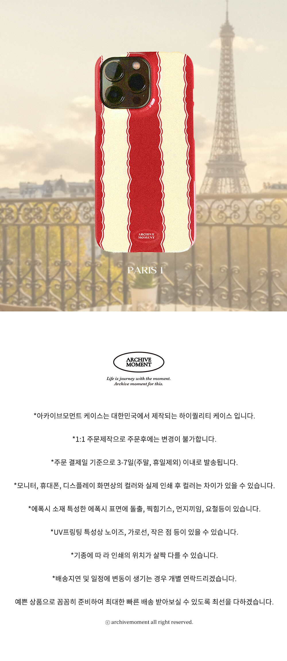 상품 하자, 오배송의 경우 수령일로부터 7일 이내 고객센터 접수 후 교환∙반품이 가능합니다. (교환/반품비 무료)