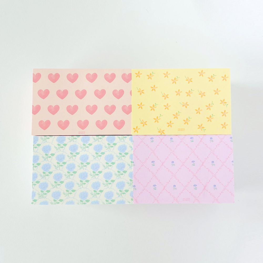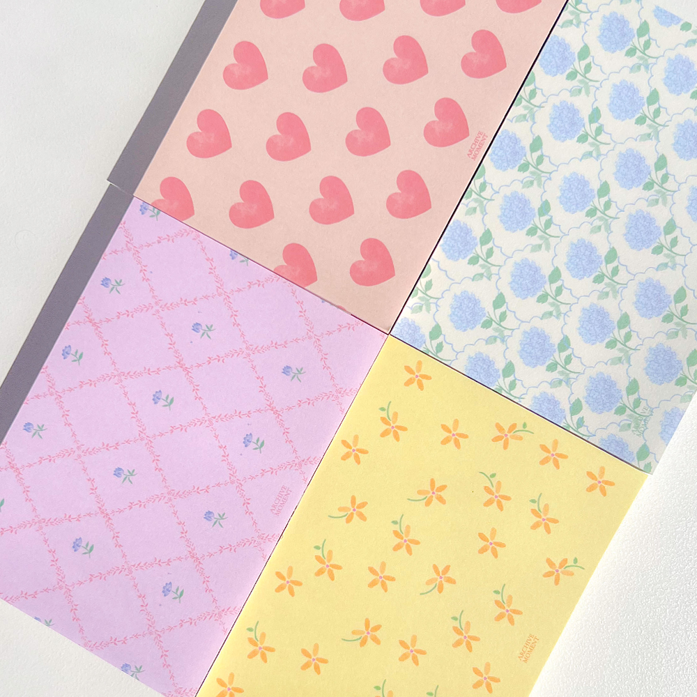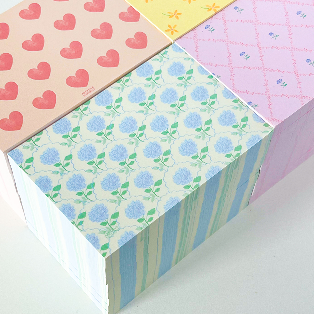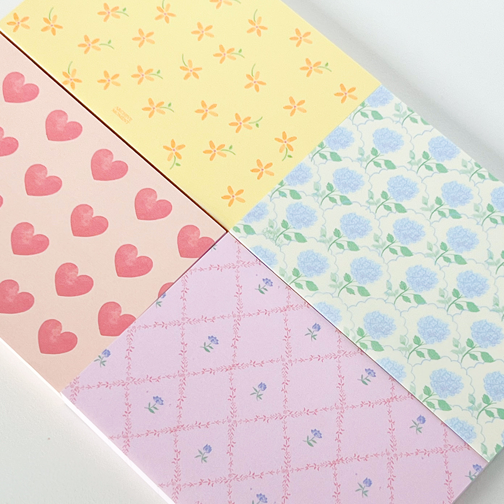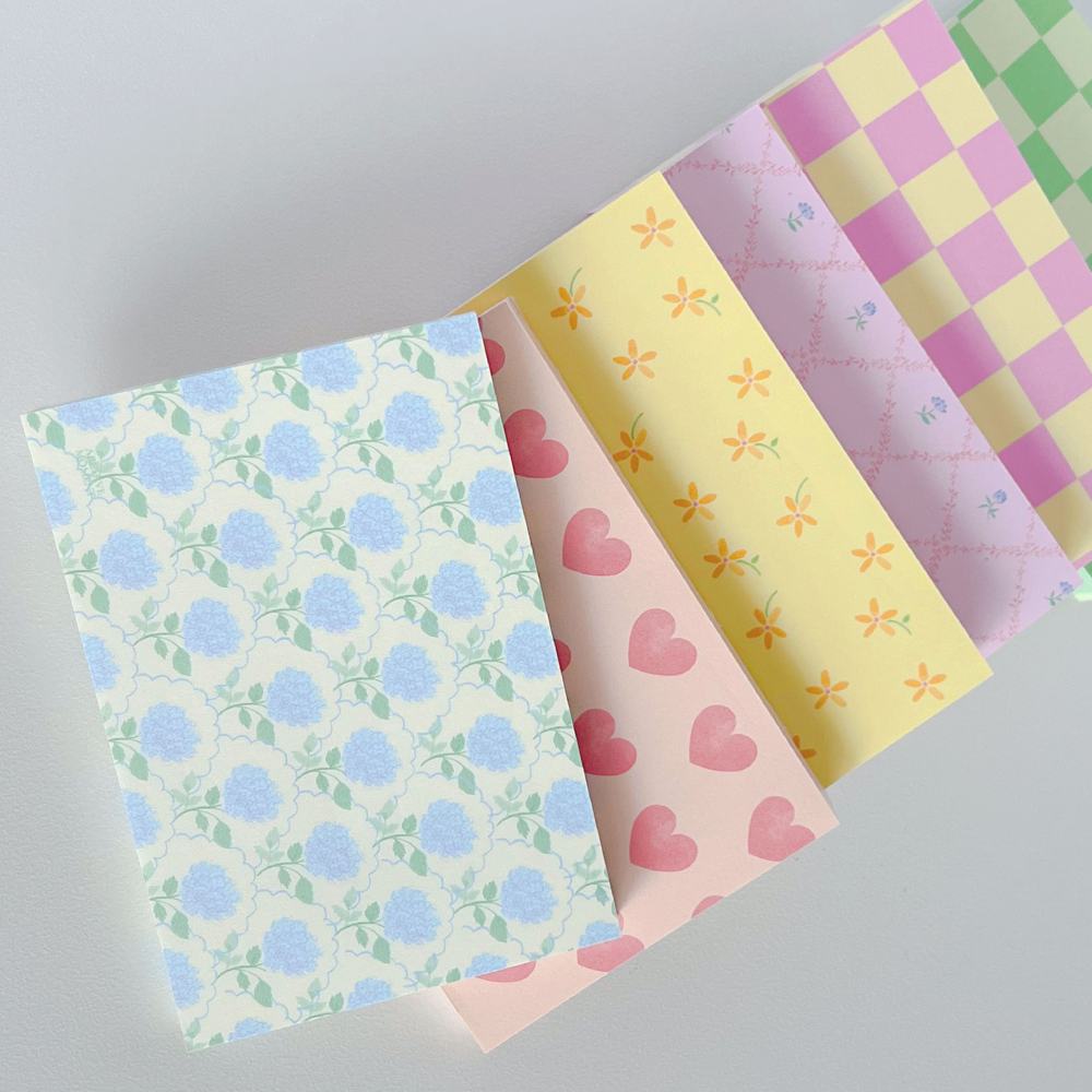 따뜻한 봄 햇살을 받는 뛸를리 가든에서의 감정과 장면들을 패턴화한 메모패드입니다.✨